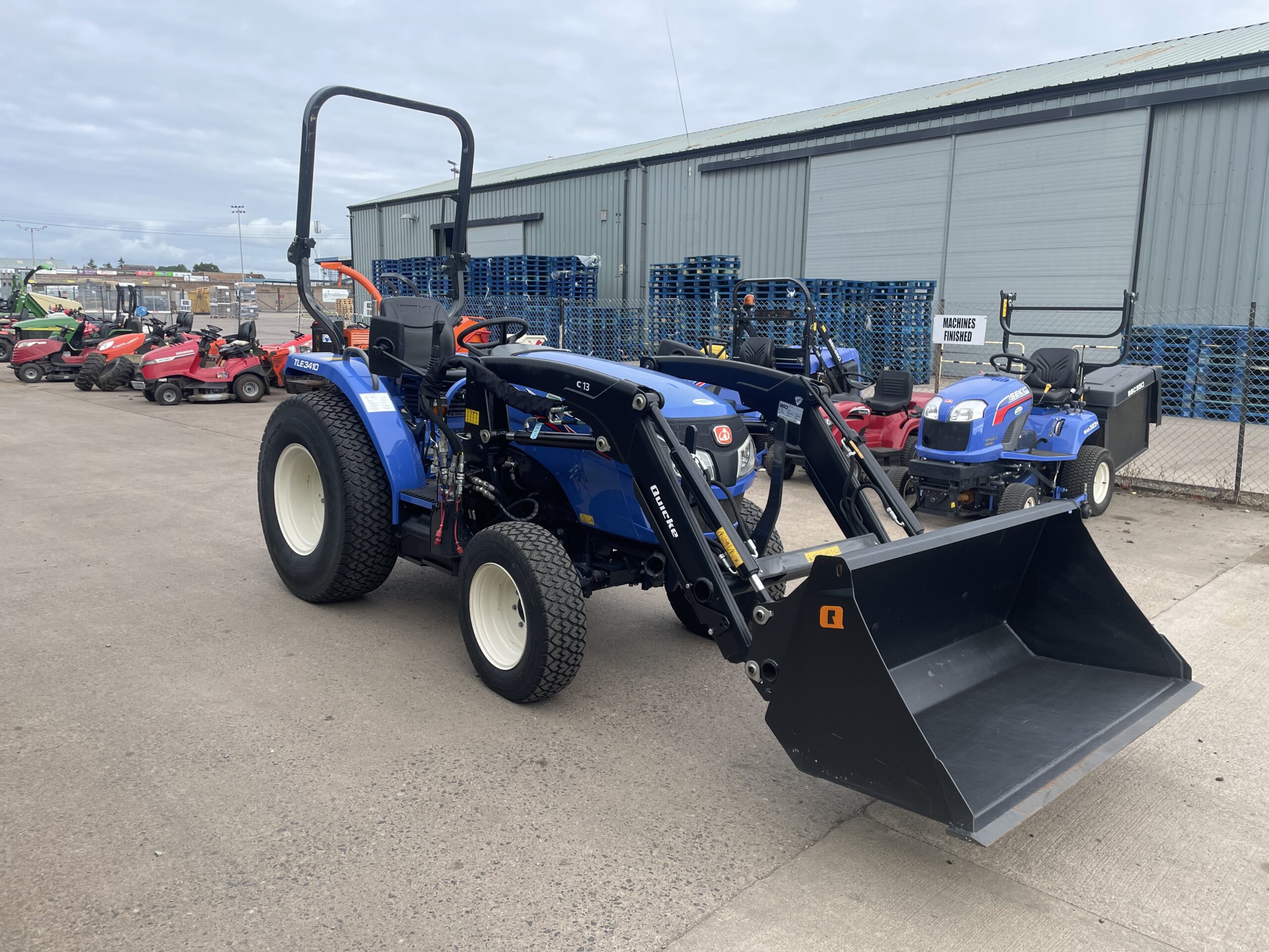 Featuring ROPS and a Quicke C13 loader and bucket.