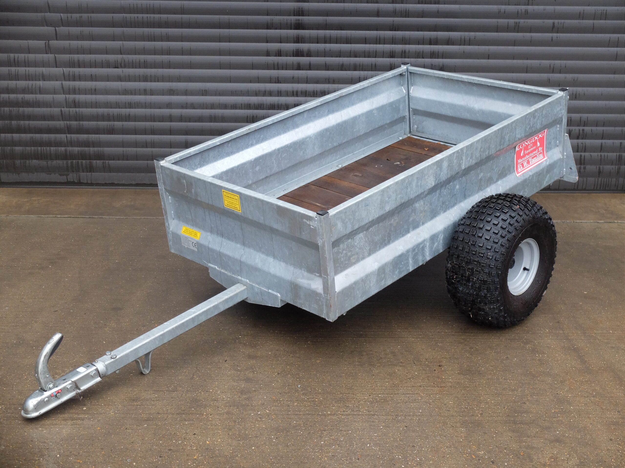 The sides are low and solid, and there is a swivel hitch for additional safety alongside a full-width beam axle.