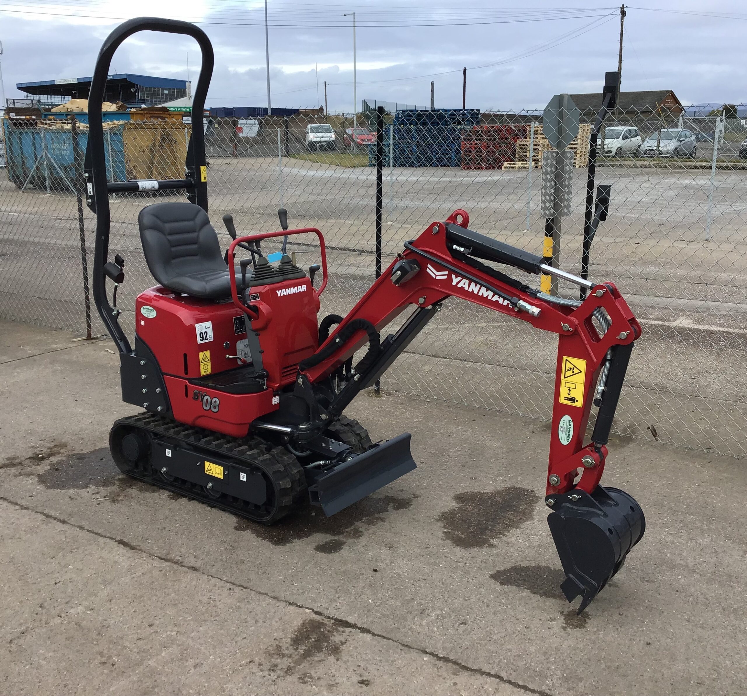 New Yanmar SV08 micro excavator with 12″ digging bucket and ROPS included. Fuel type: Diesel